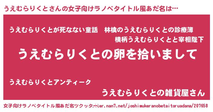 | 男性向けラノベタイトル風あだ名 | 『ダンジョンにうえむらりくとを求めるのは間違っているだろうか』 |