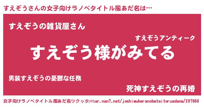 | 胡散臭い通販商品みたいなあだ名 | 『全米が絶賛したサプリメント…その名も「すえぞう」』 |