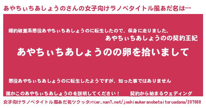 | 胡散臭い通販商品みたいなあだ名 | 『伝統あるサプリメント…その名も「あやちぃちあしょうの」』 |
