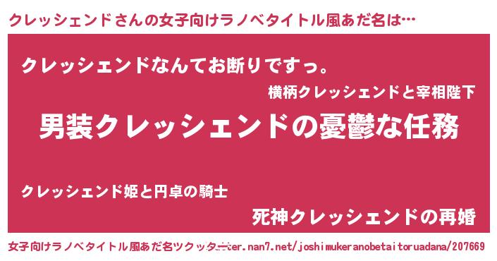 | 伝説のあだ名 | 『救世主となる錬金術士クレッシェンド』 |