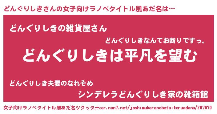 | 意味不明あだ名 | 『とにかく怪しいどんぐりしき』 |