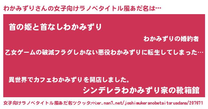 | 胡散臭い通販商品みたいなあだ名 | 『世界中を虜にした100年もののヴィンテージワイン…その名も「わかみずり」』 |