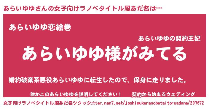 | 男性向けラノベタイトル風あだ名 | 『あらいゆゆの嫁は女の子じゃないと思った?』 |