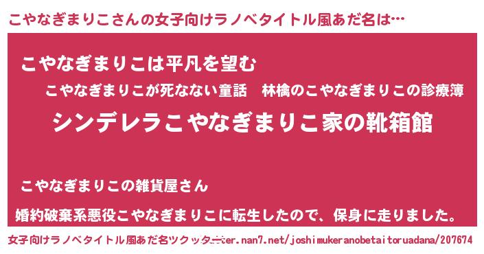 | 意味不明あだ名 | 『とにかく怪しいこやなぎまりこ』 |