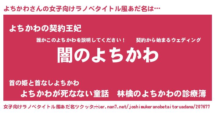 | 男性向けラノベタイトル風あだ名 | 『Re:よちかわから始める異世界生活』 |