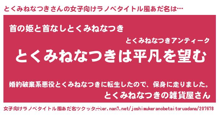 | 意味不明あだ名 | 『とにかく怪しいとくみねなつき』 |