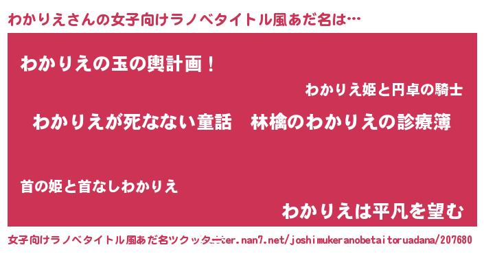 | 恥ずかしいあだ名 | 『ワカリンリン』『プリティーわかりえ』 |