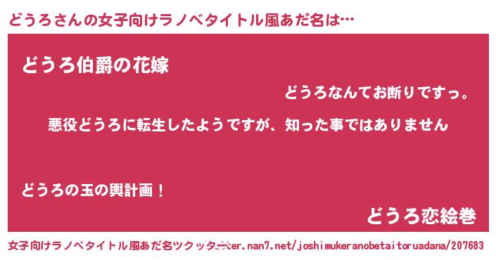 | 胡散臭い通販商品みたいなあだ名 | 『あなたにだけ特別に提供する世界で10本だけ現存している希少なブランデー…その名も「どうろ」』 |
