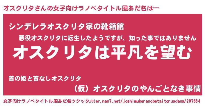 | 胡散臭い通販商品みたいなあだ名 | 『信頼と実績のサプリメント…その名も「オスクリタ」』 |