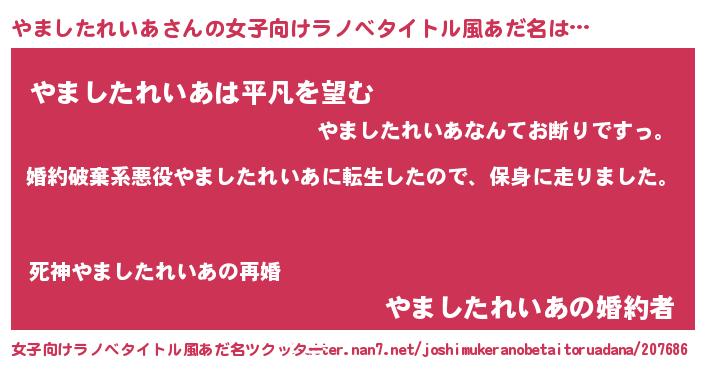 | 胡散臭い通販商品みたいなあだ名 | 『伝統あるサプリメント…その名も「やましたれいあ」』 |