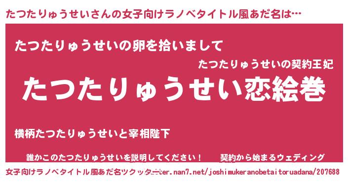 | ヒーロー風カッコイイあだ名 | 『慈愛の使者たつたりゅうせい』 |