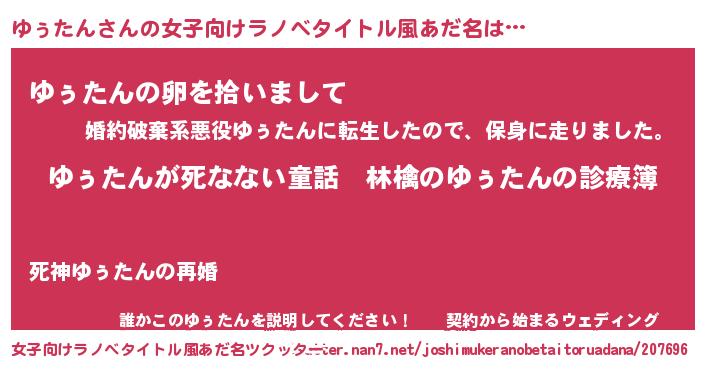 | 意味不明あだ名 | 『住所不定無職ゆぅたん(68歳)』 |