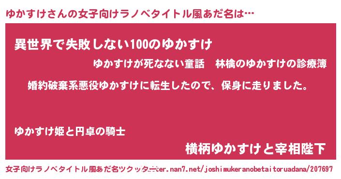 | 男性向けラノベタイトル風あだ名 | 『転生したらゆかすけだった件』 |