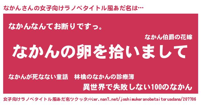 | 男性向けラノベタイトル風あだ名 | 『なかんの嫁は女の子じゃないと思った?』 |