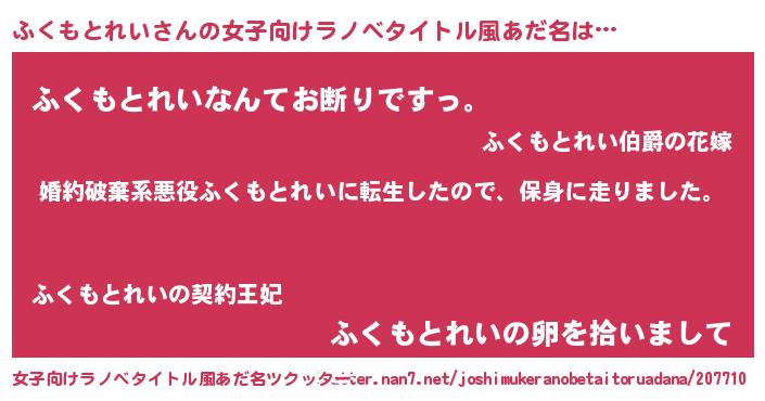 | 料理風あだ名 | 『ふくもとれいごはん』 |