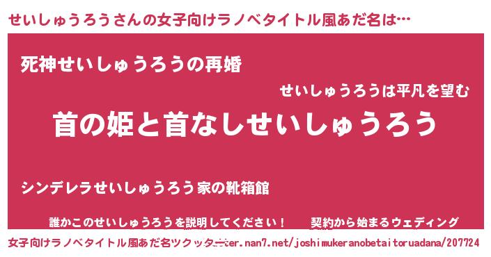| ヒーロー風カッコイイあだ名 | 『正義の使者せいしゅうろう』 |