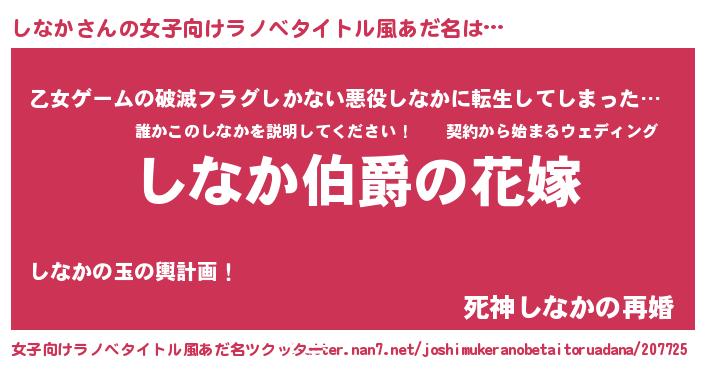 | 男性向けラノベタイトル風あだ名 | 『やはりしなかの青春ラブコメはまちがっている 』 |