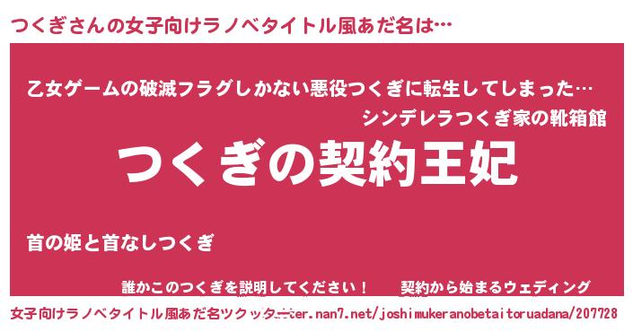 | 男性向けラノベタイトル風あだ名 | 『つくぎという概念が存在しない退屈な世界 』 |