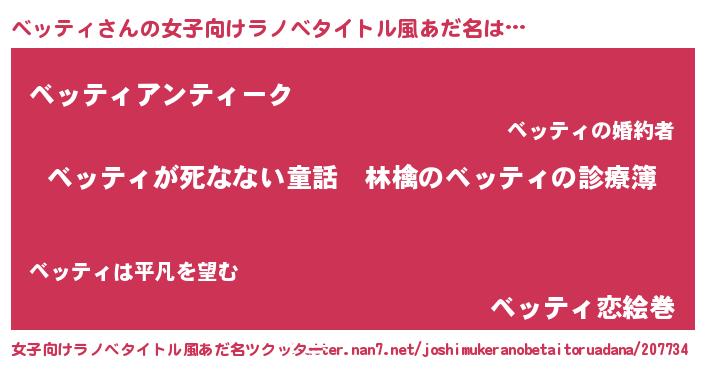 | 男性向けラノベタイトル風あだ名 | 『魔弾の王とベッティ』 |