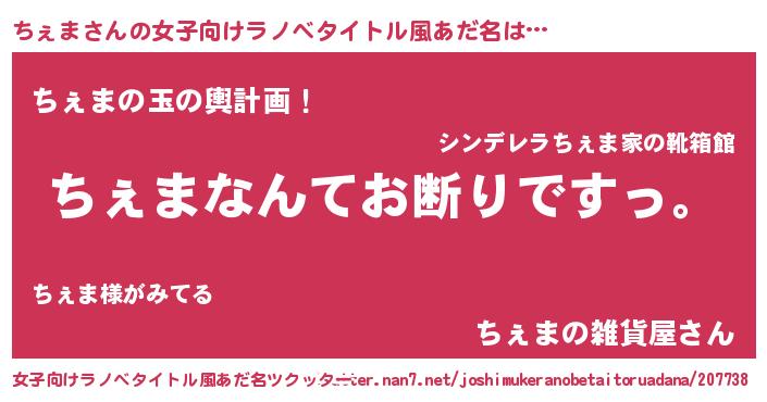| 男性向けラノベタイトル風あだ名 | 『魔法科高校のちぇま』『緋弾のチェマ』 |