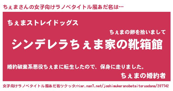 | 男性向けラノベタイトル風あだ名 | 『冴えないちぇまの育てかた』 |