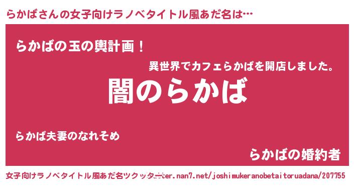 | 男性向けラノベタイトル風あだ名 | 『Re:らかばから始める異世界生活』 |