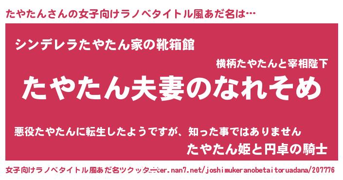 | 胡散臭い通販商品みたいなあだ名 | 『100人中100人が認めたマグネット磁石…その名も「たやたん」』 |