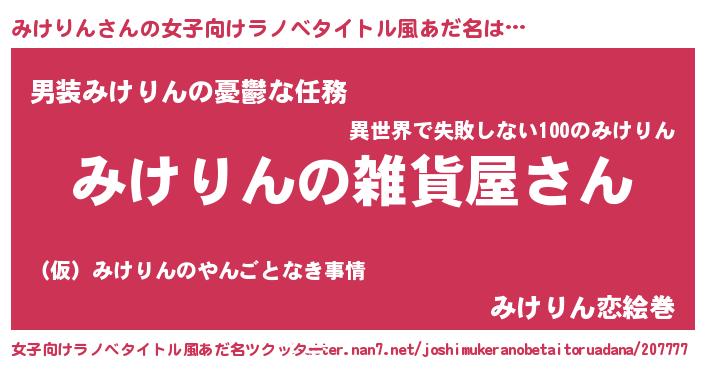 | 男性向けラノベタイトル風あだ名 | 『やはりみけりんの青春ラブコメはまちがっている 』 |