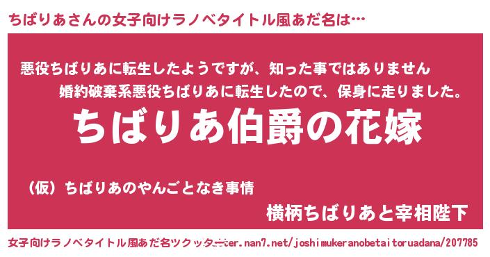 | 欧米人風あだ名 | 『ちばりあクリステル』 |