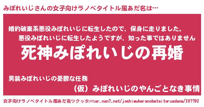 | 男性向けラノベタイトル風あだ名 | 『ノーゲーム・ノーミポレイジ』 |
