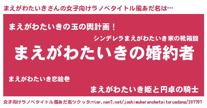 | ファンタジー風あだ名 | 『エターナルマエガワタイキー』 |