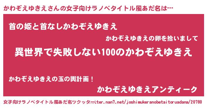 | 男性向けラノベタイトル風あだ名 | 『かわぞえゆきえという概念が存在しない退屈な世界 』 |