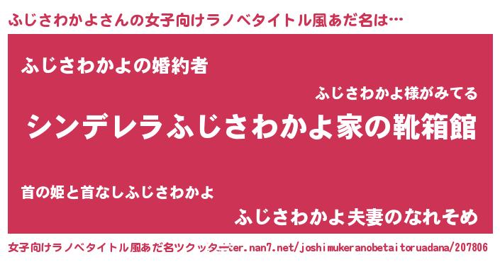 | 男性向けラノベタイトル風あだ名 | 『冴えないふじさわかよの育てかた』 |