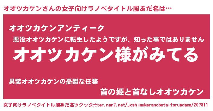 | 胡散臭い通販商品みたいなあだ名 | 『全米が絶賛したサプリメント…その名も「オオツカケン」』 |