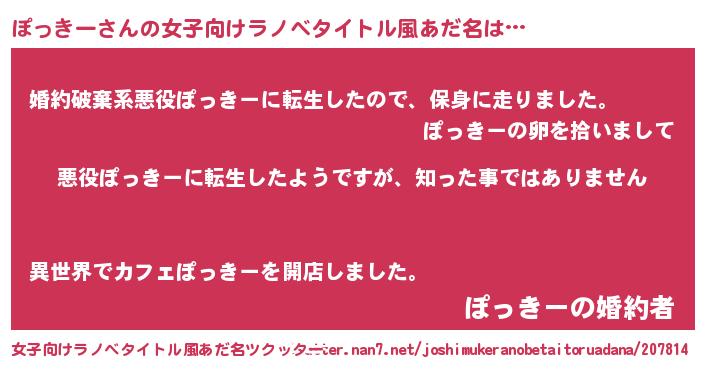 | 意味不明あだ名 | 『住所不定無職ぽっきー(40歳)』 |