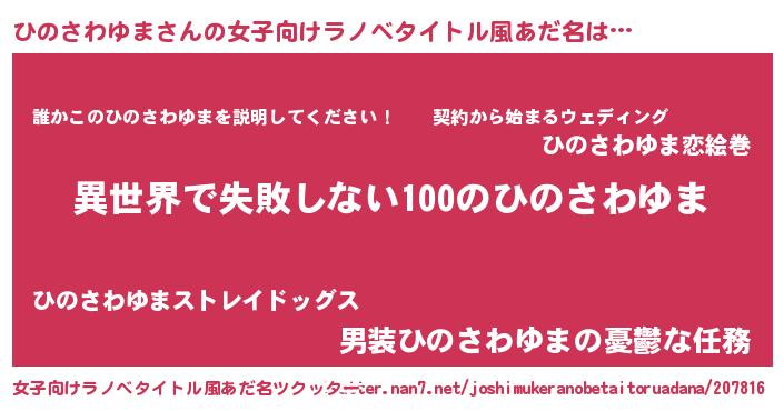 | 胡散臭い通販商品みたいなあだ名 | 『絶対に幸福をもたらす水素水…その名も「ひのさわゆま」』 |