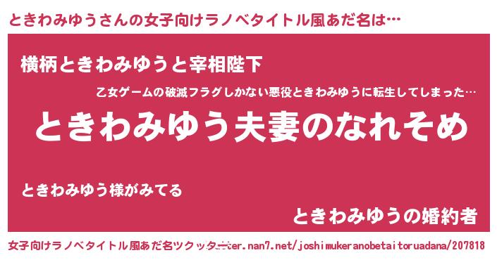 | 胡散臭い通販商品みたいなあだ名 | 『100人中100人が認めたマグネット磁石…その名も「ときわみゆう」』 |