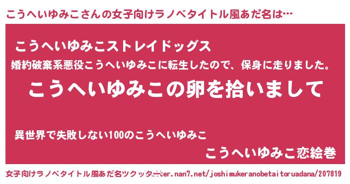 | 意味不明あだ名 | 『とにかく怪しいこうへいゆみこ』 |