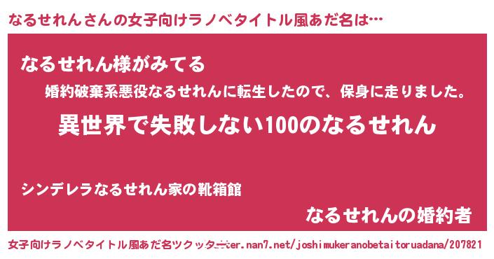 | 胡散臭い通販商品みたいなあだ名 | 『絶対に幸福をもたらす水素水…その名も「なるせれん」』 |