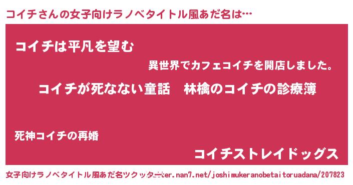 | ピコ太郎風あだ名 | 『コイ次郎』『ピココ郎』『ココ太郎』 |