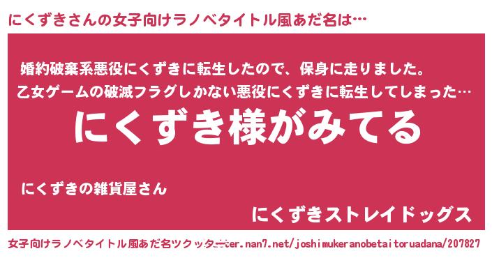 | 男性向けラノベタイトル風あだ名 | 『にくずきの嫁は女の子じゃないと思った?』 |