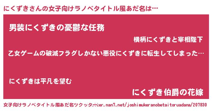 | 男性向けラノベタイトル風あだ名 | 『この素晴らしい世界ににくずきを!』 |