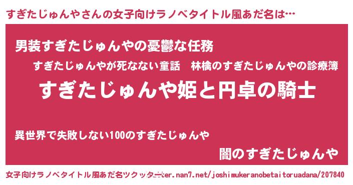 | 男性向けラノベタイトル風あだ名 | 『スギタジュンヤアートオンライン』 |