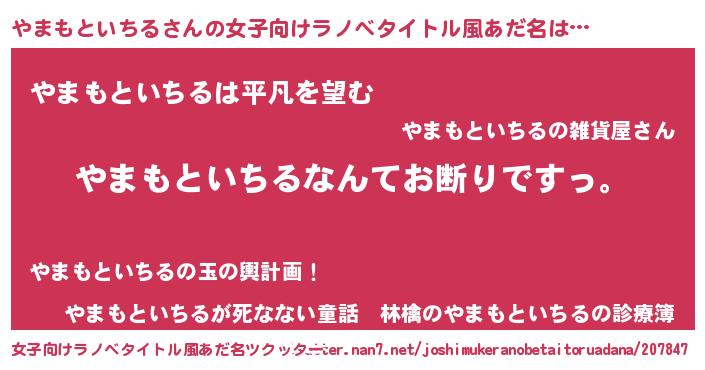 | 意味不明あだ名 | 『自称やまもといちる』 |