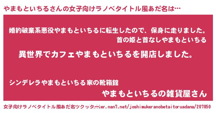 | 男性向けラノベタイトル風あだ名 | 『誰もが恐れるあのやまもといちるが、ぼくの専属メイドになるようです。』 |