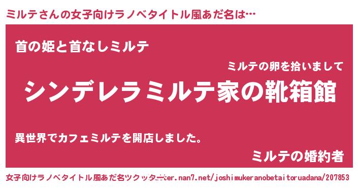 | 男性向けラノベタイトル風あだ名 | 『緋弾のミルテ』『はたらくミルテさま!』 |