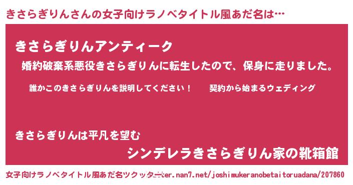 | 男性向けラノベタイトル風あだ名 | 『キサラギリンアートオンライン』 |