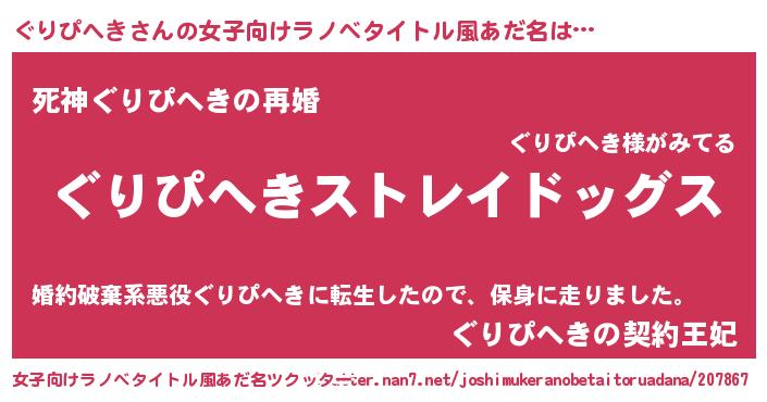 | 意味不明あだ名 | 『自称ぐりぴへき』『永久保存ぐりぴへき』 |
