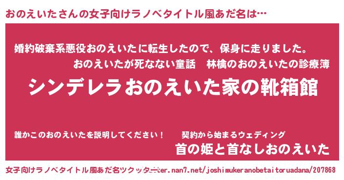 | 胡散臭い通販商品みたいなあだ名 | 『ハリウッド女優が絶賛した世界で10本だけ現存している希少なブランデー…その名も「おのえいた」』 |