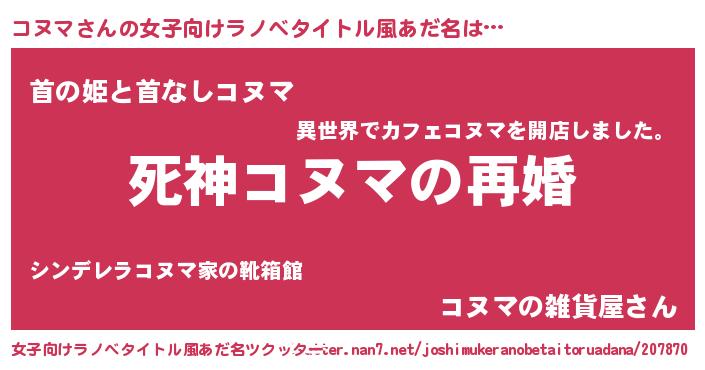 | 自動車の名前っぽいあだ名 | 『コンR』『ランコヌギーニ』『コクア』 |